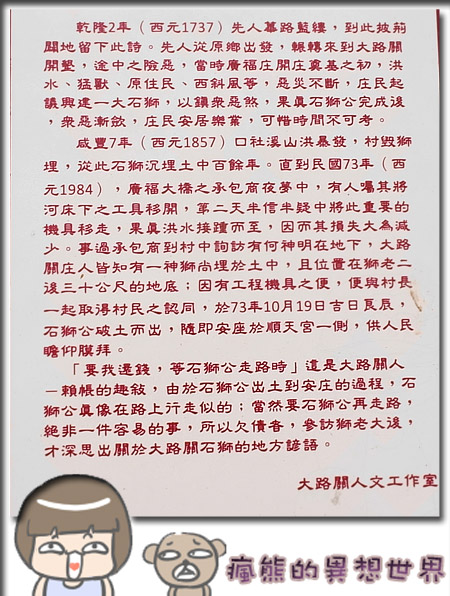 獅老大的故事~~這樣說來,這老大可是非常有歷史的呢,對大路關的人也是非常重要的信仰吧,