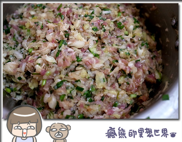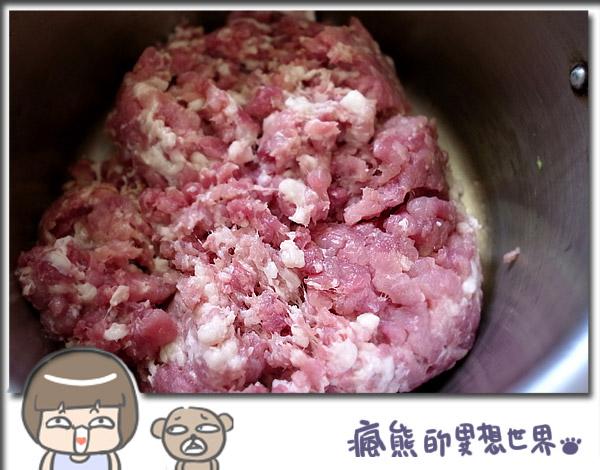 絞肉:咱家準備的睡瘦肉遠高於肥肉,頂多2:8或更低喔(因為咱家不愛吃油,不過會加點豬皮下去一起絞,這樣的餡吃起來會更有口感(會QQ的咩),