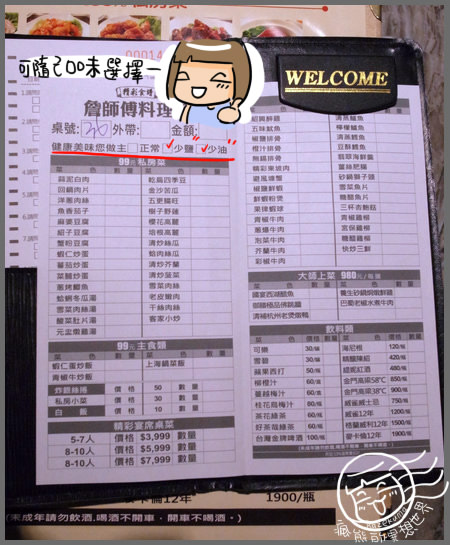 又菜單本還有這點餐單,可自行選取自己愛的食物啦,價位也清楚的標示了,主要分99元和199元的兩個區塊,嗯..的確是很平價耶,不過讓我喜歡的是上面可選少鹽的選擇,外食對我來說大多都過鹹啦,我可是清淡掛的。