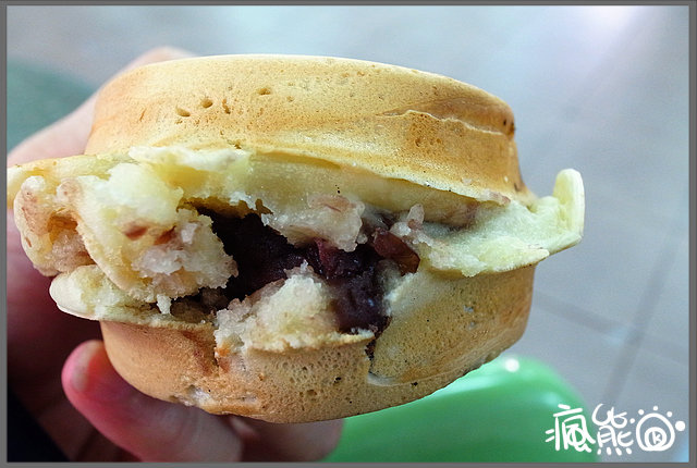 奶油也是我吃車輪餅一定會吃的,當然還是以不要太甜為主啦,嗯~這口味說真的挺符合我的期待呢,滿滿的餡加上不太甜,一整個好滿足啊~哈~車還沒來就先被我解決了XD。